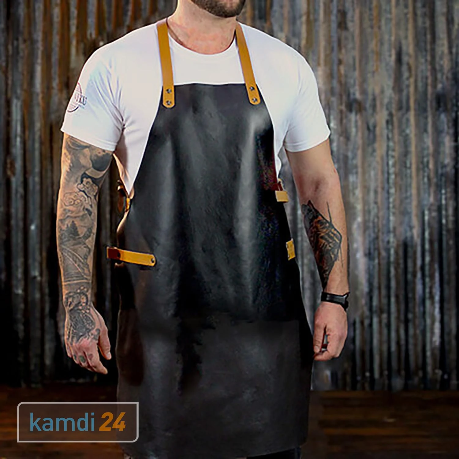 Die von schützt Sie beim Grillen vor Fettspritzern und fliegenden Funken. Sie besteht aus hochwertigem in Schwarz, dass Sie auch optisch zum Grillmeister oder zur Grillmeisterin macht! Die breiten Träger in gelbem Leder kreuzen sich auf dem Rücken, was den Hals schont und für mehr Tragekomfort sorgt. Bei dieser handelt es sich um eine .
