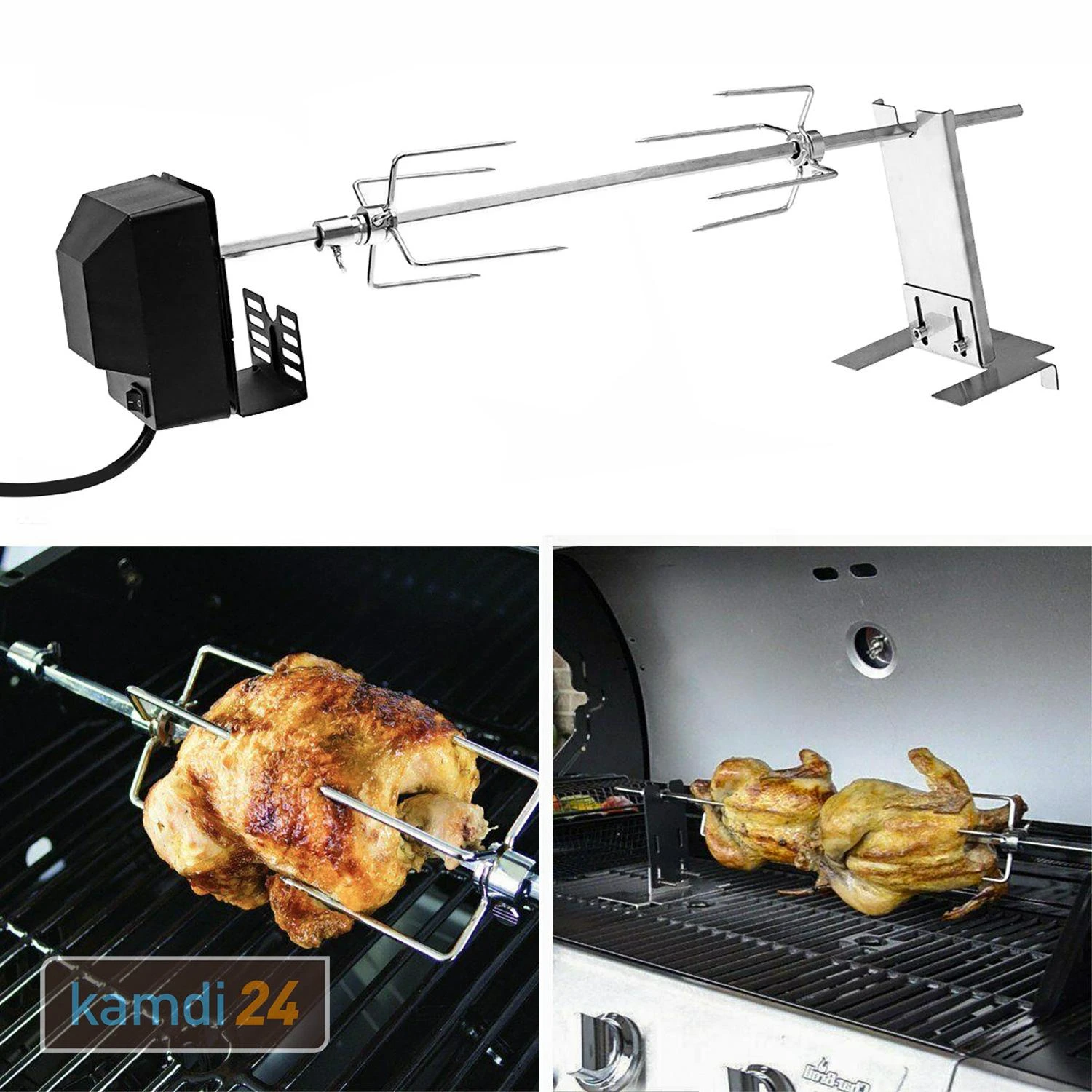 Mit dem von können Sie große Fleischstücke und Gerichte wie Brathähnchen oder Gyros gleichmäßig garen und das ohne großen Aufwand! Das ist mit einem Motor ausgestattet und lässt sich einfach mit einem Ein- und Ausschalter bedienen. Dabei können Sie entscheiden, ob Sie das beiliegende (220 Volt) oder den Betrieb mit (nicht in der Lieferung enthalten!) nutzen.